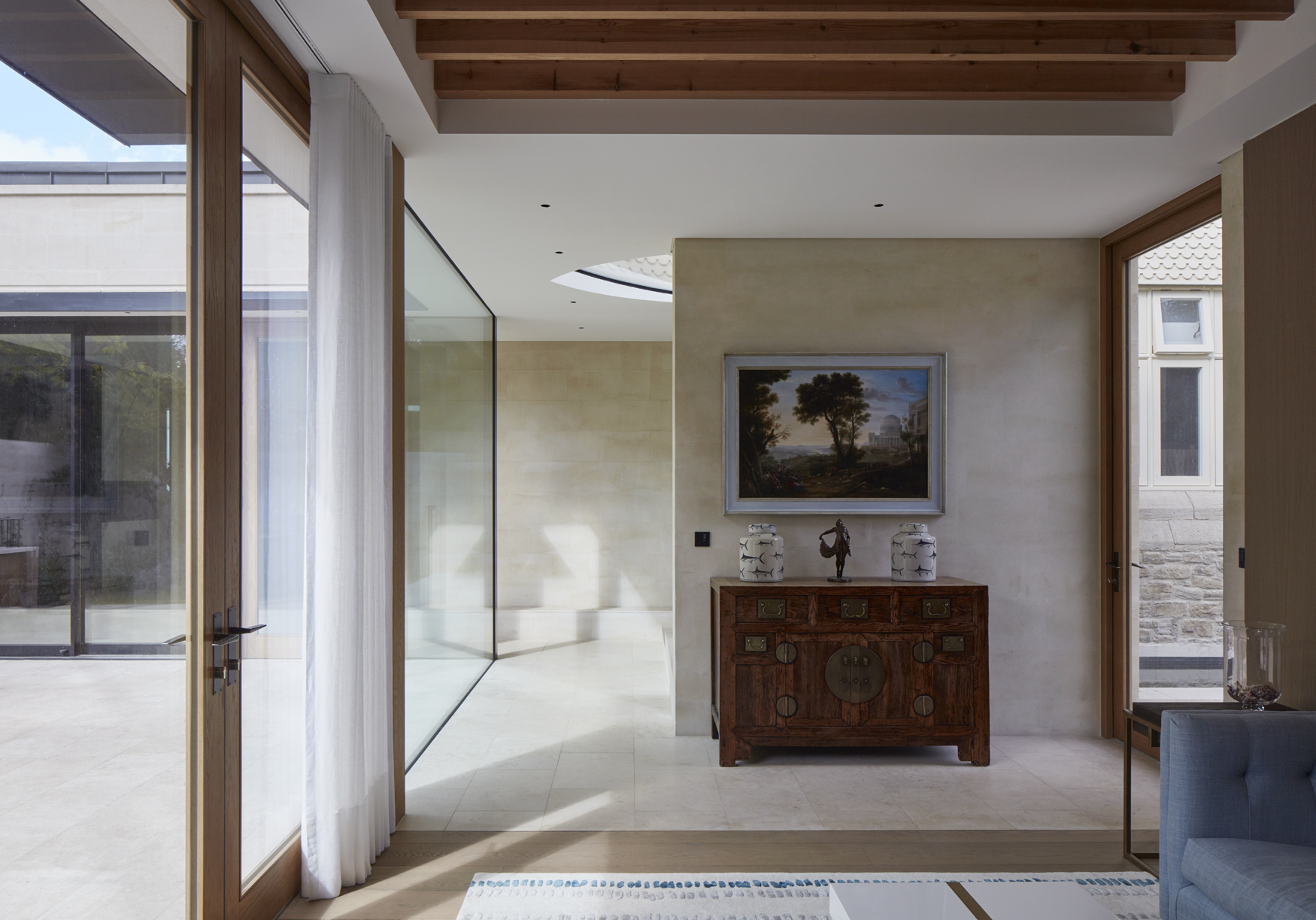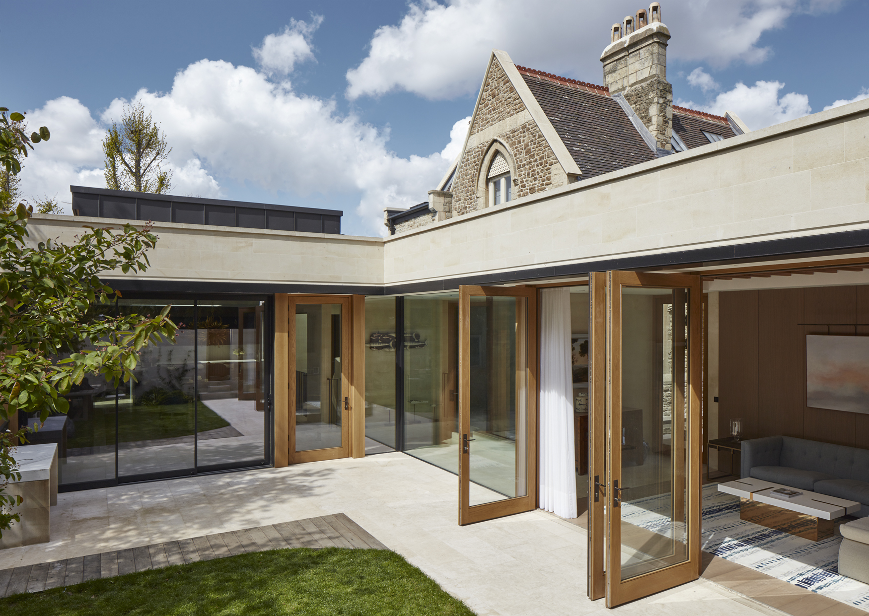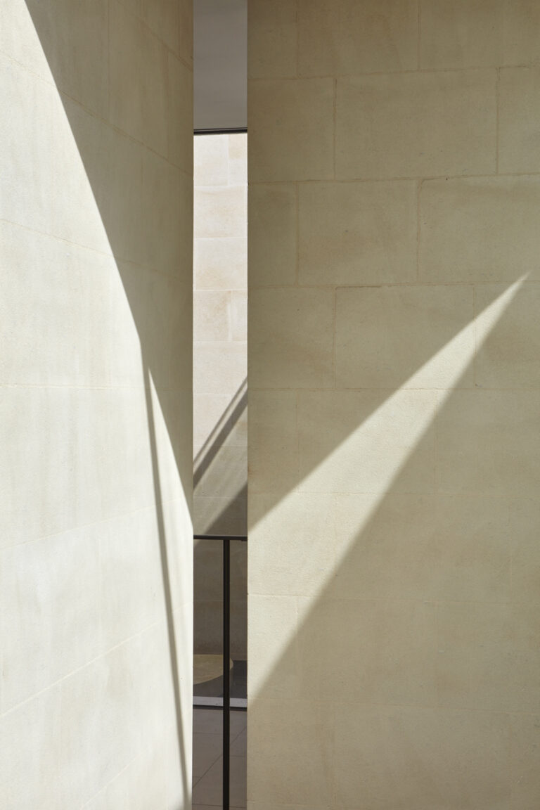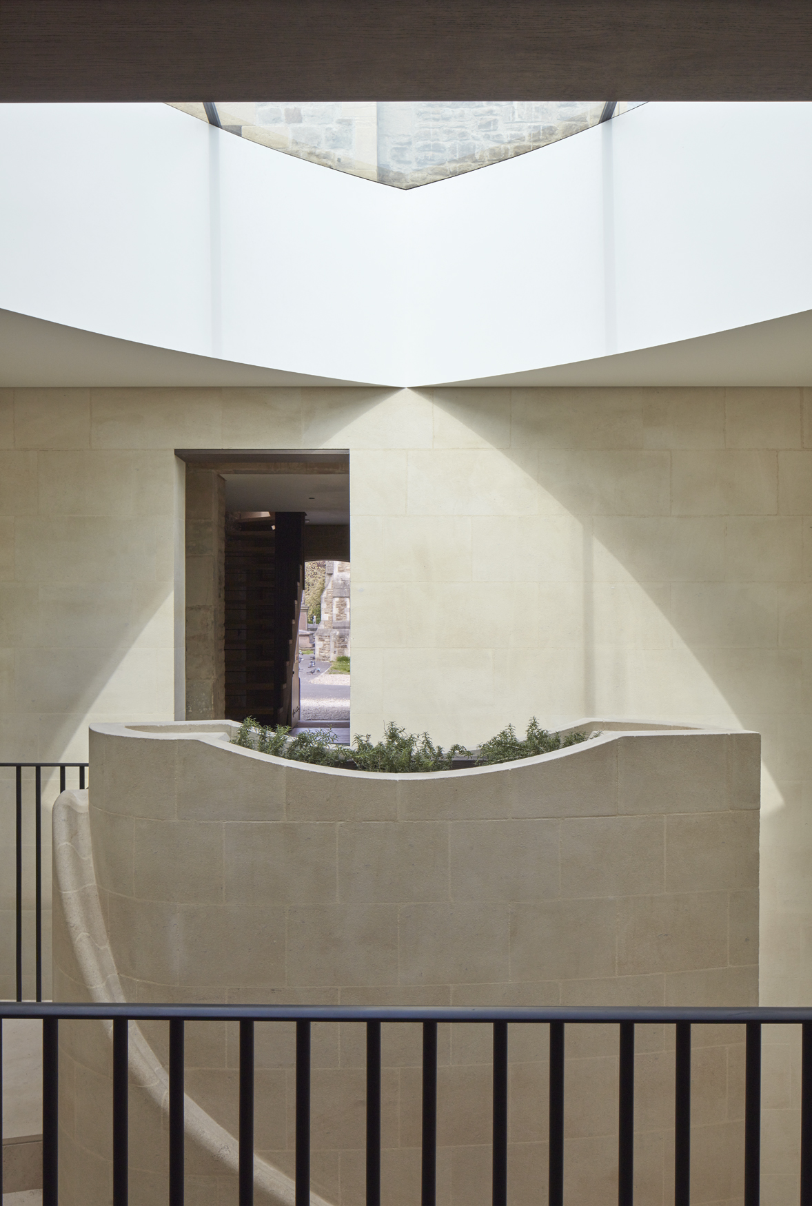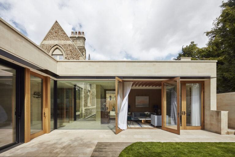 The building and gardens as a whole become a series of connected volumes and voids recalling the house of the great gothic revivalist Pugin and the ideal settlement he planned at Ramsgate. The extension is built of Bath stone to match the cottage with zinc and sedum roofs.