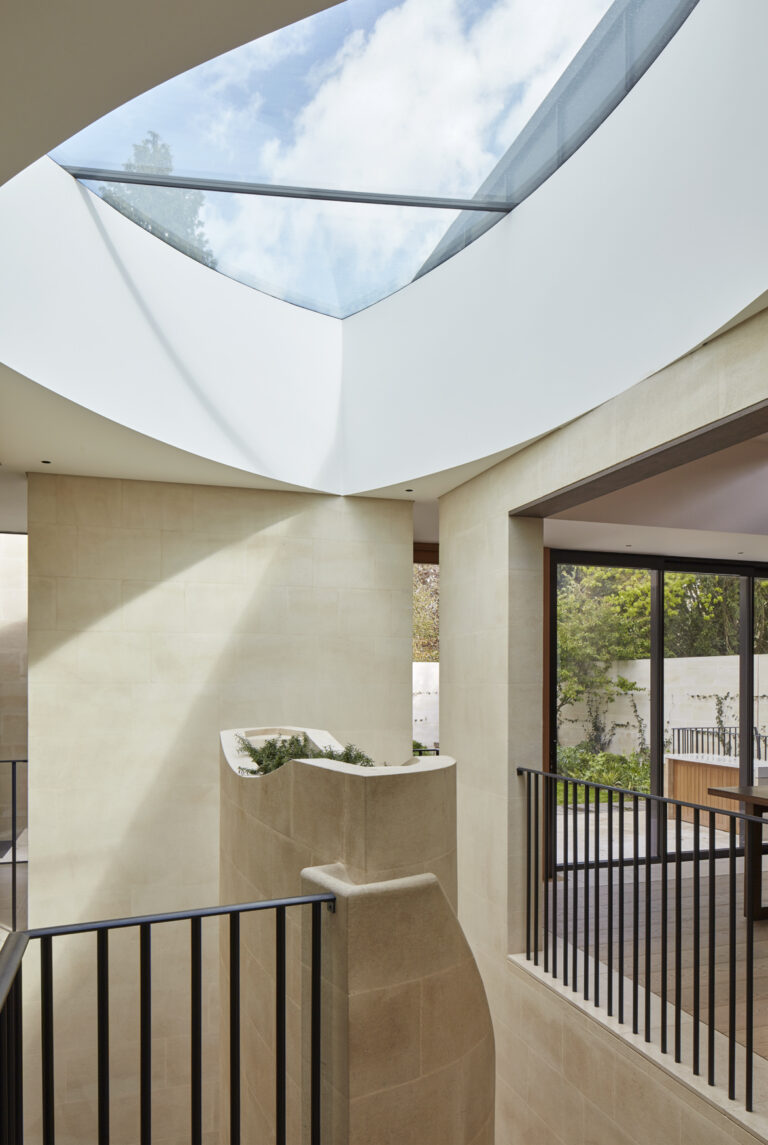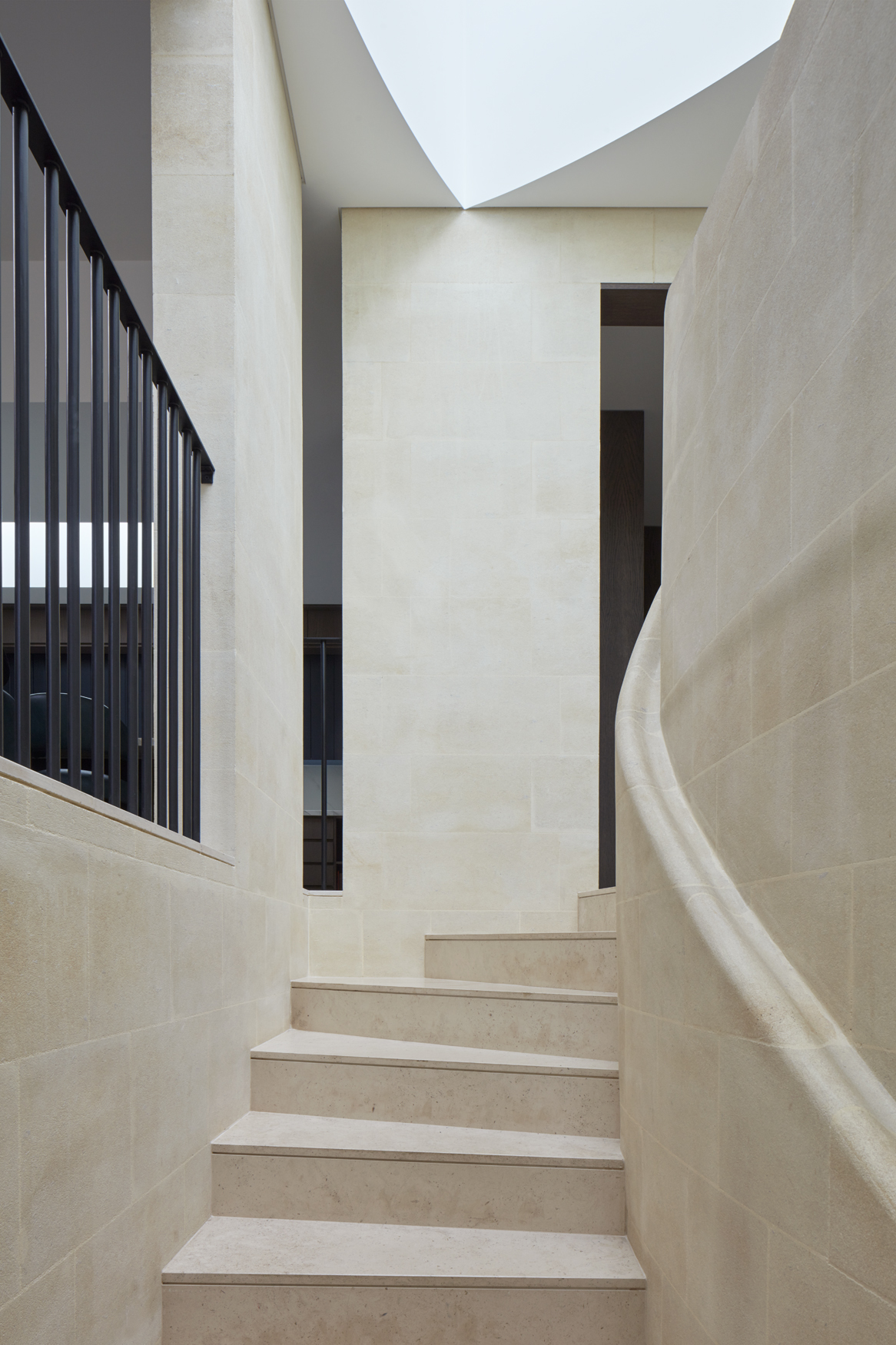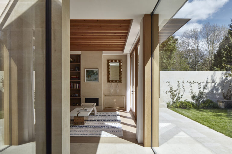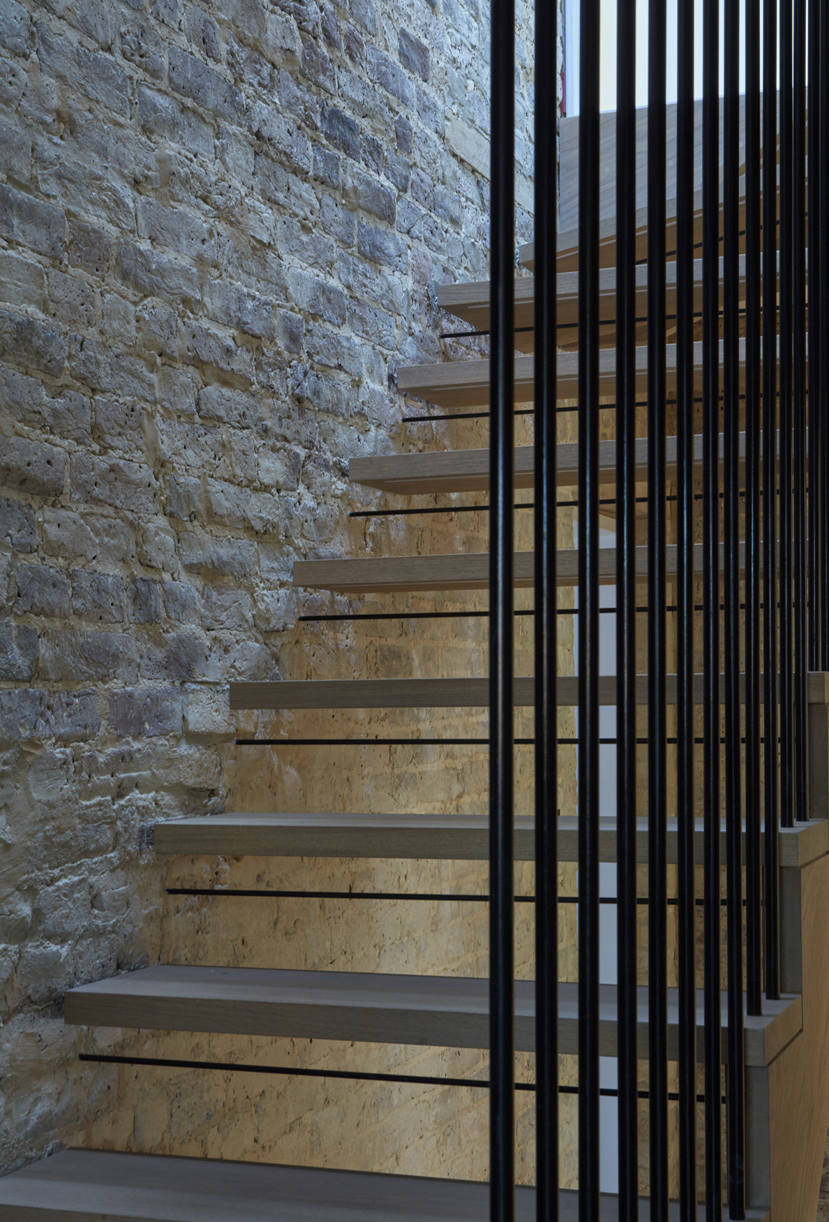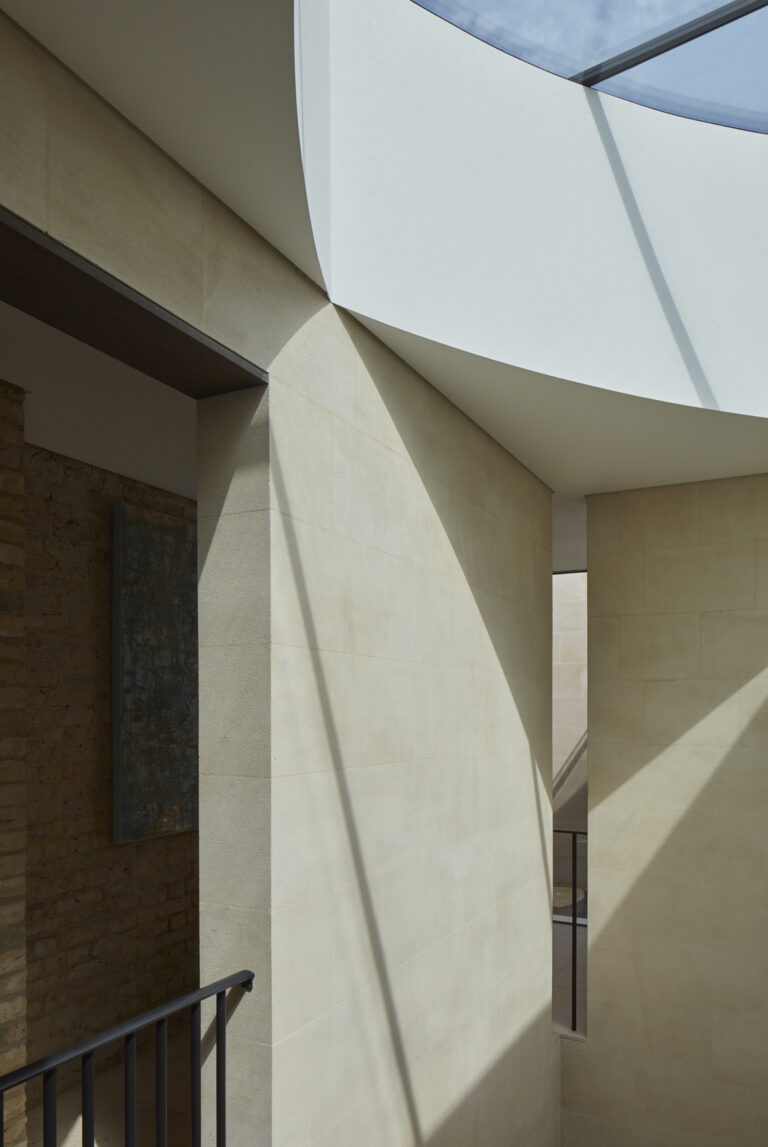 The building and gardens as a whole become a series of connected volumes and voids recalling the house of the great gothic revivalist Pugin and the ideal settlement he planned at Ramsgate. The extension is built of Bath stone to match the cottage with zinc and sedum roofs.