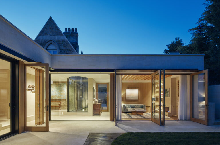 This project is for the refurbishment of a neo-gothic cottage in Fulham Cemetery and the construction of a new extension which houses a kitchen, dining and living room with a basement that contains a swimming pool, media room, guest bedrooms, wine store and ancillary spaces.