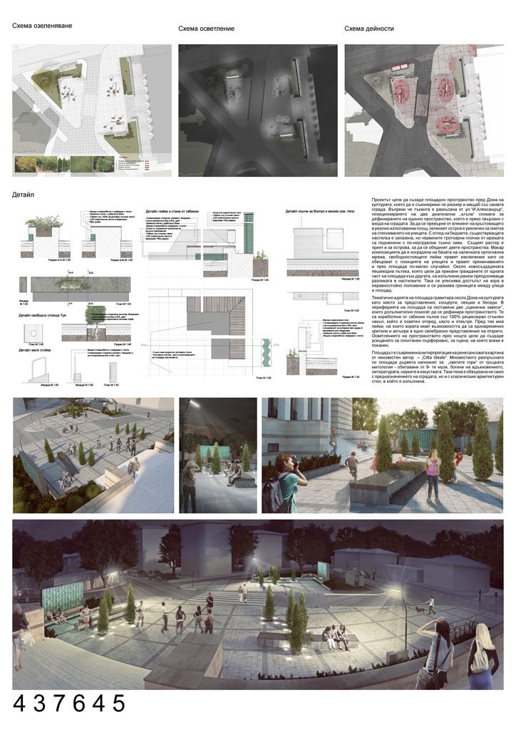 This scheme seeks to create a public square in front of the House of Culture which is of a scale appropriate to the size of the building.
