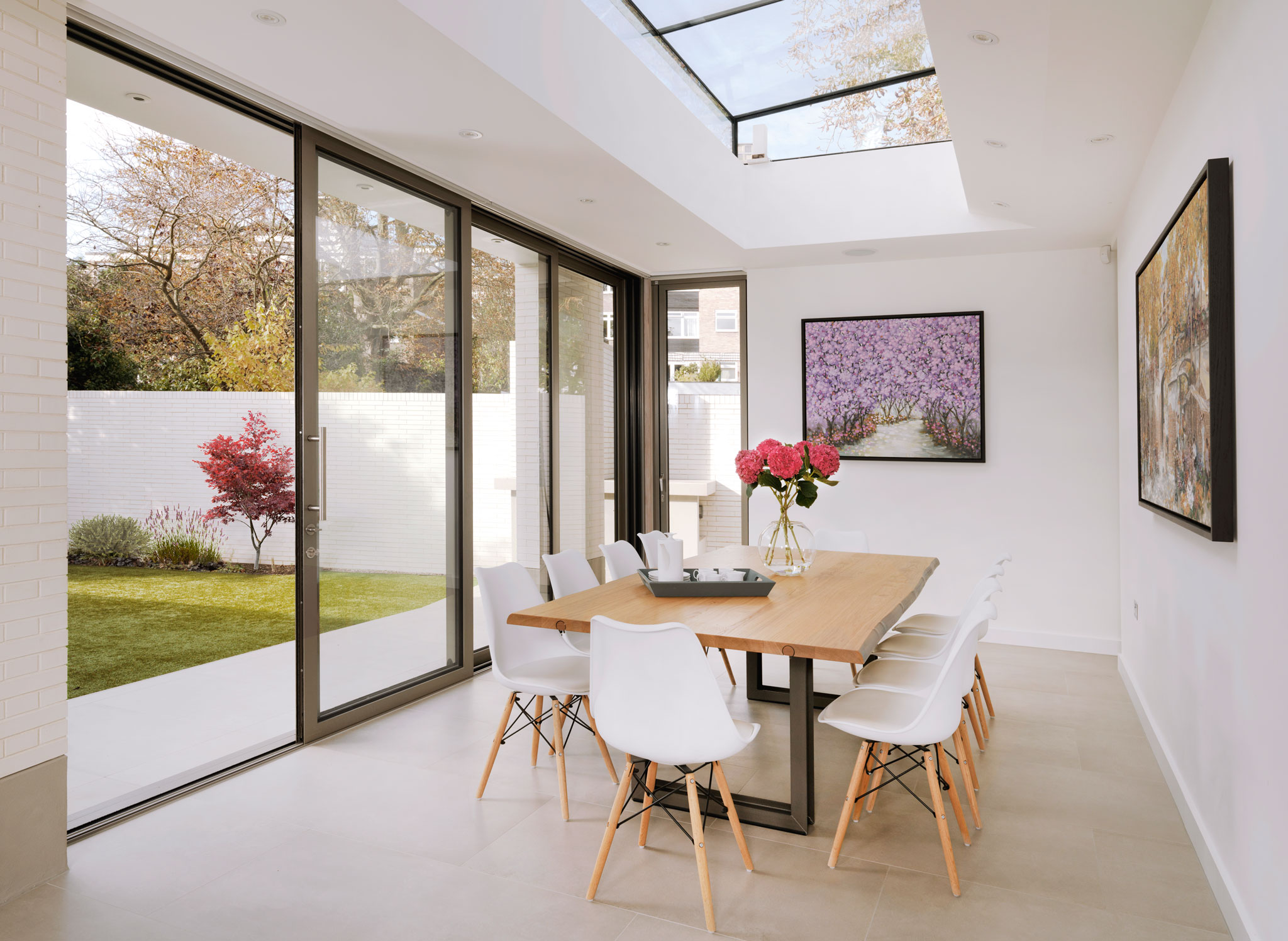 Our clients in Putney wanted a new dining room with an open view out to the garden and a good connection to both kitchen and living room, along with a new utility room. The ground floor layout of the original house, was torturous and compressed, precluding enjoyment of the rear garden. Now this is immediately visible from the entrance hall, and the living, dining and kitchen spaces flow together making the house feel much larger and lighter.