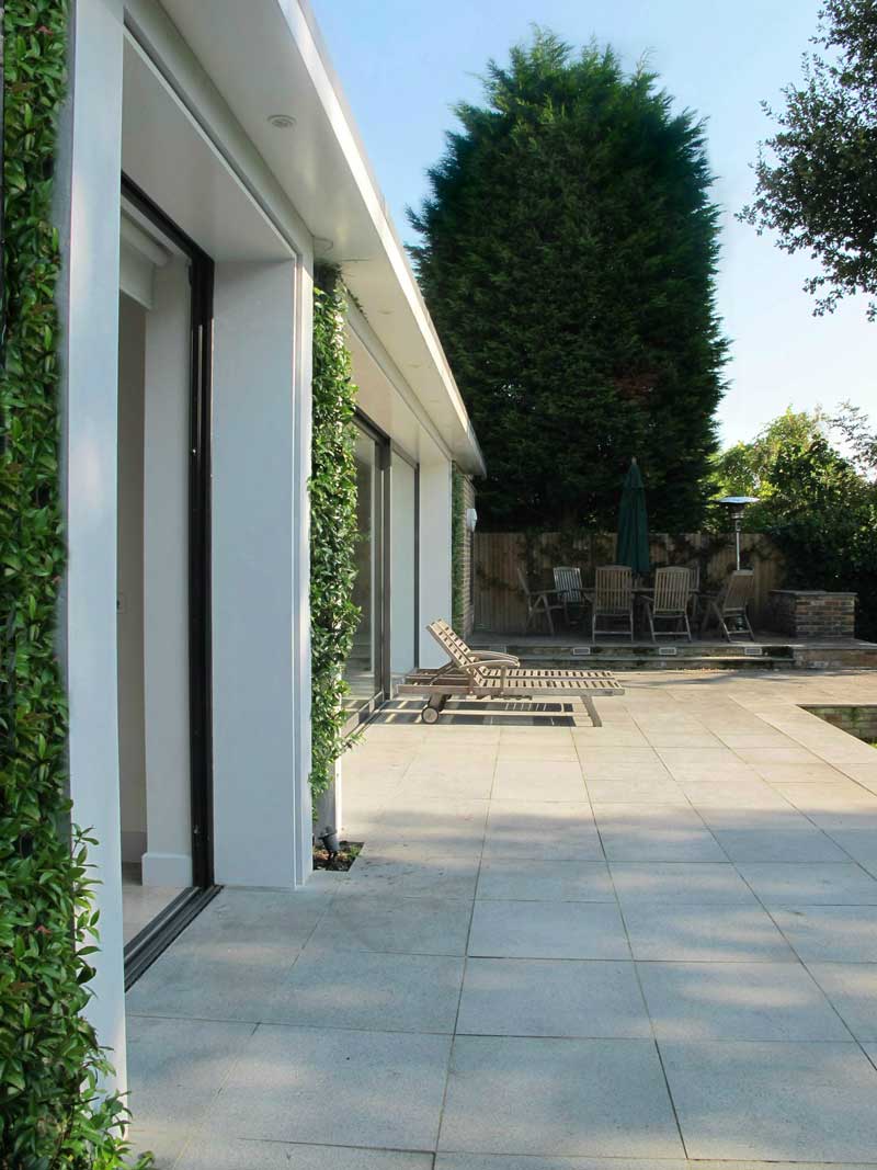 The project involved the total refurbishment, reconfiguration and extension of a detached Inter-war house. The internal changes provide a better functioning and more open house whilst the extensions allow the provision of two new ensuite bathrooms, a gym area on the upper floors with a larger dining and living space on the ground floor that enjoys an expansively open relationship to the garden.